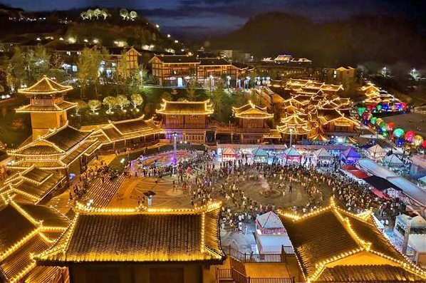 貴州省黔西南州晴隆縣阿妹戚托小鎮(zhèn)景區(qū)夜景