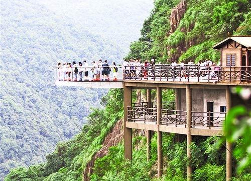 游客在江西省安遠(yuǎn)縣三百山風(fēng)景區(qū)游覽