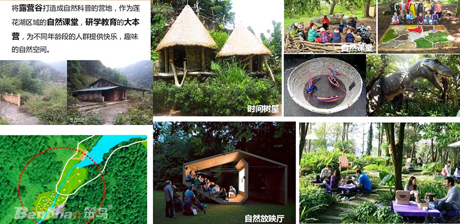 沿線游步道、觀景平臺(tái)和露營(yíng)地蓮花湖片區(qū)的提升設(shè)計(jì),及景觀小品、科普設(shè)施、休憩設(shè)施的配