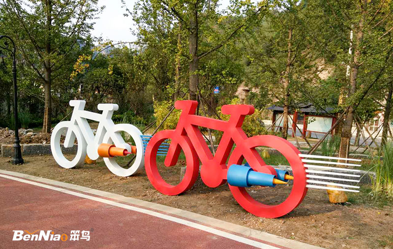 赤水河谷國(guó)家級(jí)旅游度假區(qū)騎行自行車雕塑小品、玻璃鋼騎行自行車