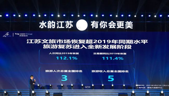 今年3月27日,“水韻江蘇·有你會更美”文旅消費推廣第一季正式啟動,通過系列活動挖掘內(nèi)需、精準營銷刺激消費等探索與嘗試,江蘇各地文旅融合百花齊放,衍生出新業(yè)態(tài),實現(xiàn)了多元化新供給,交出了亮眼的成績單?!敖刂?月31日,通過線上線下多項活動的舉辦和宣傳推廣,帶動7.61億曝光人次;攜程集團為江蘇輸送游客量達到3300萬人次;攜程‘江蘇星球號’總計發(fā)放超17.2萬張俠客券,發(fā)放金額達4510萬元;攜程平臺江蘇省旅游人次同比2019年同期恢復(fù)率為112.1%,旅游交易額同比2019年同期恢復(fù)率為111.4%?!睌y程集團副總裁王韋全面解讀江蘇省文旅市場復(fù)蘇大數(shù)據(jù)。