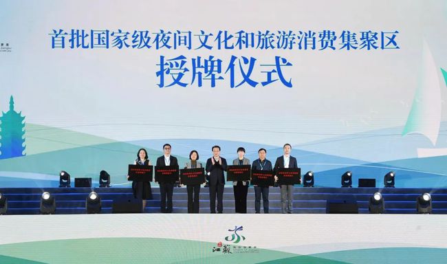 爭創(chuàng)國家文旅消費試點示范城市,打造新業(yè)態(tài)、新產(chǎn)品、新模式,引領(lǐng)文旅消費全面提升;創(chuàng)建國家級、省級夜間文旅消費集聚區(qū),點亮城市夜經(jīng)濟,活躍夜文化、夜旅游、夜生活,促進文旅消費提質(zhì)擴容,是江蘇文旅消費工作的重要抓手。啟動儀式前夕,江蘇迎來無錫市、連云港市、淮安市入選第二批國家文化和旅游消費試點城市名單,南京市夫子廟-秦淮風(fēng)光帶、南京市長江路、無錫市拈花灣小鎮(zhèn)、常州市環(huán)球恐龍城、蘇州市周莊古鎮(zhèn)、蘇州市金雞湖景區(qū)入選首批國家級夜間文化和旅游消費集聚區(qū)名單,入選數(shù)均居全國第一的新好消息。江蘇省文化和旅游廳也新近認定第二批省級夜間文化和旅游消費集聚區(qū)建設(shè)單位15個。楊志純?yōu)?個國家級夜間文化和旅游消費集聚區(qū)授牌。