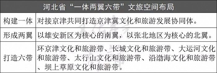 同樣,河北省作為京津冀戰(zhàn)略拓展的腹地,是“全國現(xiàn)代商貿(mào)物流重要基地、產(chǎn)業(yè)轉(zhuǎn)型升級試驗區(qū)、新型城鎮(zhèn)化與城鄉(xiāng)統(tǒng)籌示范區(qū)、京津冀生態(tài)環(huán)境支撐區(qū)”,在其《文旅規(guī)劃》總體目標(biāo)中明確,到2025年,文化強省和旅游強省建設(shè)取得重大進展,文化創(chuàng)新發(fā)展新高地、文化和旅游融合發(fā)展新樣板、國際知名的旅游度假休閑目的地建設(shè)取得重大突破。