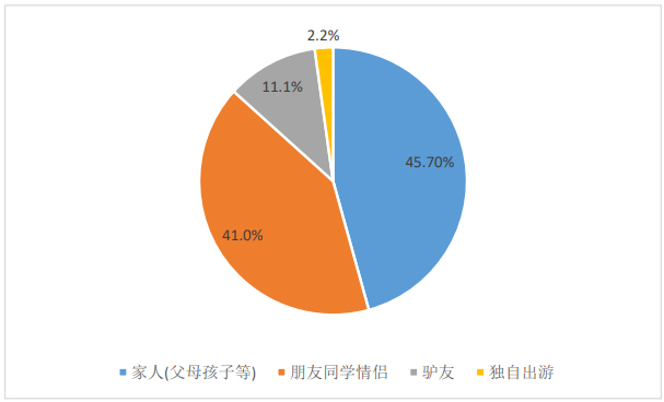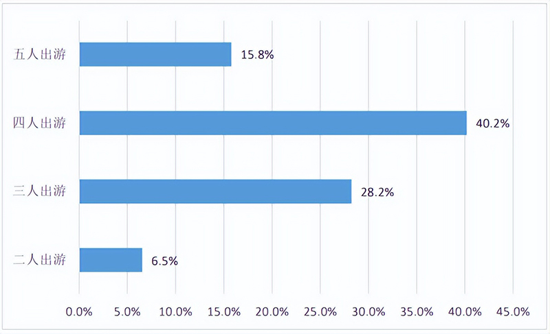 家庭游、親子游在假日市場仍然占據(jù)主導(dǎo)地位。調(diào)查顯示,45.7%的游客與家人(父母孩子等)出游。本次清明假期出游平均同游人數(shù)為3人(不包括受訪者本人),其中,三人出游和四人出游最多,分別為28.2%和40.2%。游客主動踐行不扎堆、自覺做好防疫措施,文明出游。