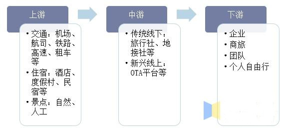 旅游行業(yè)是一個(gè)綜合性產(chǎn)業(yè),其產(chǎn)業(yè)要素包括食、住、行、游、購(gòu)、娛、體等,產(chǎn)業(yè)鏈包括上游交通、住宿、景點(diǎn)等資源端,中游傳統(tǒng)線上、新興線上渠道端和下游多種旅游消費(fèi)者類型組成的消費(fèi)。