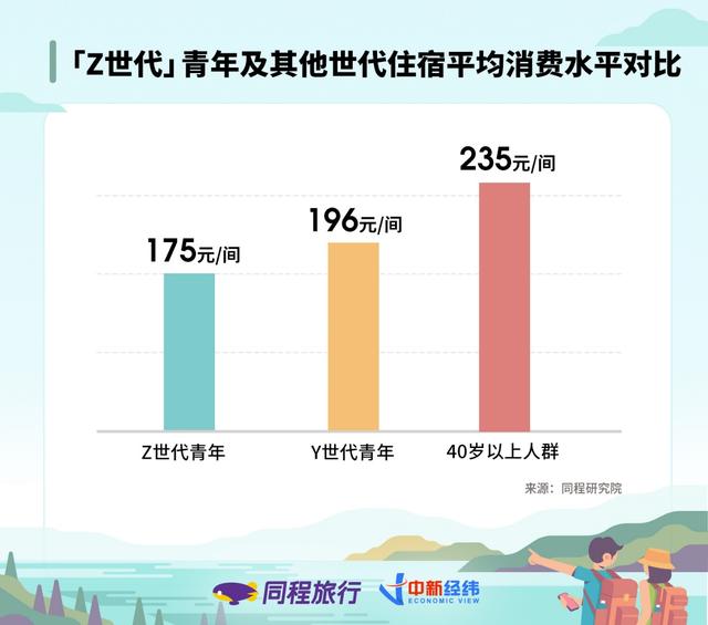 《報告》來自同程研究院有關(guān)住宿消費的最新研究表明,“Z世代”青年的平均住宿消費水平大約為175元/間(2021年一年內(nèi)的平均水平,僅統(tǒng)計可以單獨入住酒店等住宿設(shè)施的18歲及以上年齡組),明顯低于“Y世代”及以上年齡組人群,這符合“Z世代”青年的整體消費水平。