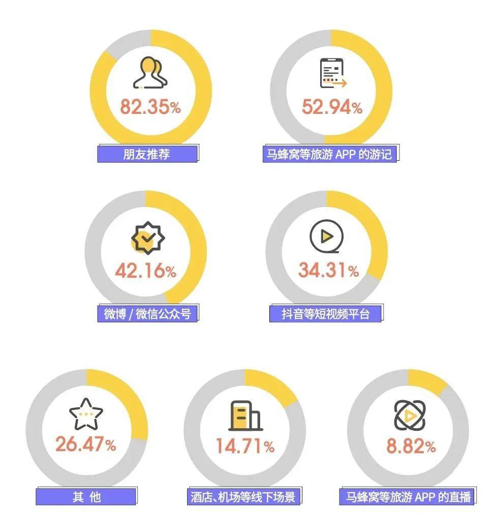 當人們需要獲取夜游相關的內(nèi)容和資訊時,82.35%的游客選擇夜游體驗時會參考朋友的推薦,身邊的朋友這種“強關系”,讓人們覺得更靠譜。同時,超過半數(shù)的游客會選擇查看游記和攻略,作為選擇夜游消費項目的重要參考。