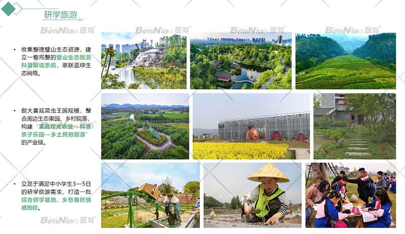 “儒雅璧山·田園都市”城市品牌形象的成效,最終要靠文旅融合的質(zhì)量效益來體現(xiàn)。笨鳥文旅認(rèn)為,可以通過探索“生態(tài)+”“科技+”“田園+”“產(chǎn)業(yè)+”等聚合模式,構(gòu)建城市文旅產(chǎn)品體系,從而提升“儒雅璧山·田園都市”城市品牌形象顯示度。