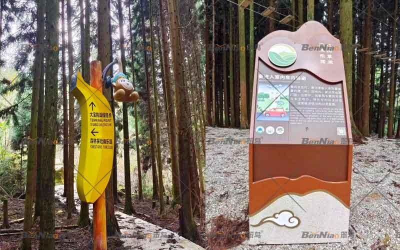 在導(dǎo)向標(biāo)識(shí)方面,笨鳥文旅充分從高度和造型方面進(jìn)行考慮,為兒童指引正確的方向,并且符合兒童的視覺審美,營造自然輕松的氛圍,打造活潑童趣的游憩環(huán)境。
