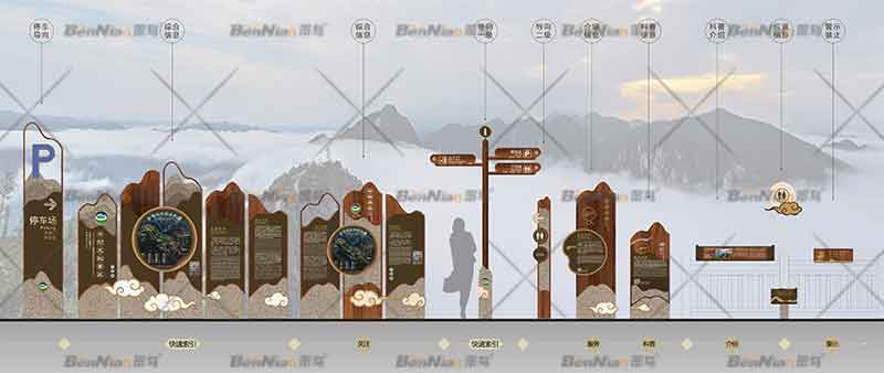 同時(shí)在旅游景區(qū)導(dǎo)視設(shè)計(jì)中,笨鳥團(tuán)隊(duì)遵循人性化、規(guī)范化、美觀性及安全性這幾點(diǎn)原則進(jìn)行規(guī)劃設(shè)計(jì):