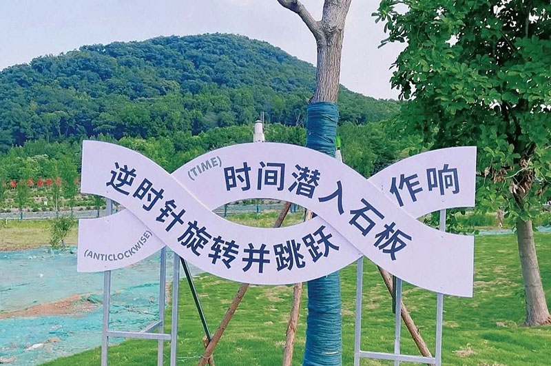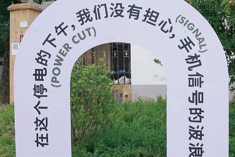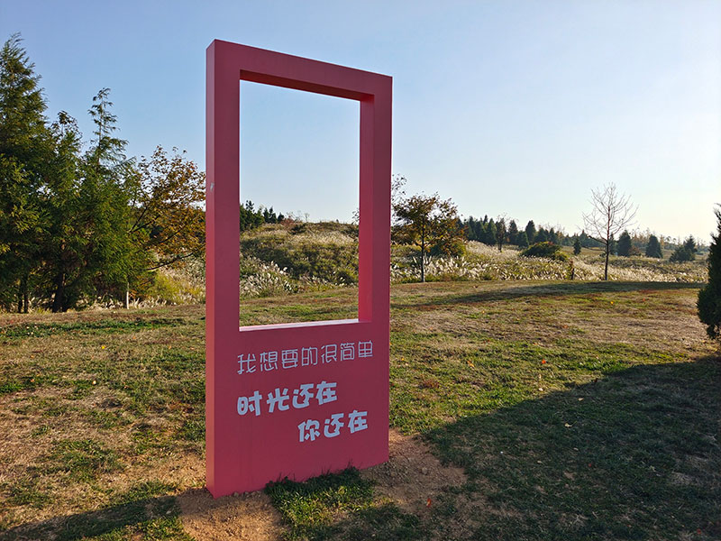 將網(wǎng)絡(luò)標(biāo)語融入到標(biāo)識、場景氛圍裝置中,可以為場所增添浪漫與溫情的氛圍。文字可以用來傳達情感和信息,通過文字的運用,可以創(chuàng)造出一個溫馨、浪漫的場所。網(wǎng)絡(luò)標(biāo)語運用到標(biāo)識、場景氛圍裝置中往往會吸引了不少游客、攝影者的青睞到標(biāo)語牌前拍照打卡,將其與美景一起定格在鏡頭中。使其既具有功能屬性,又具有打卡屬性又能宣傳旅游目的地。