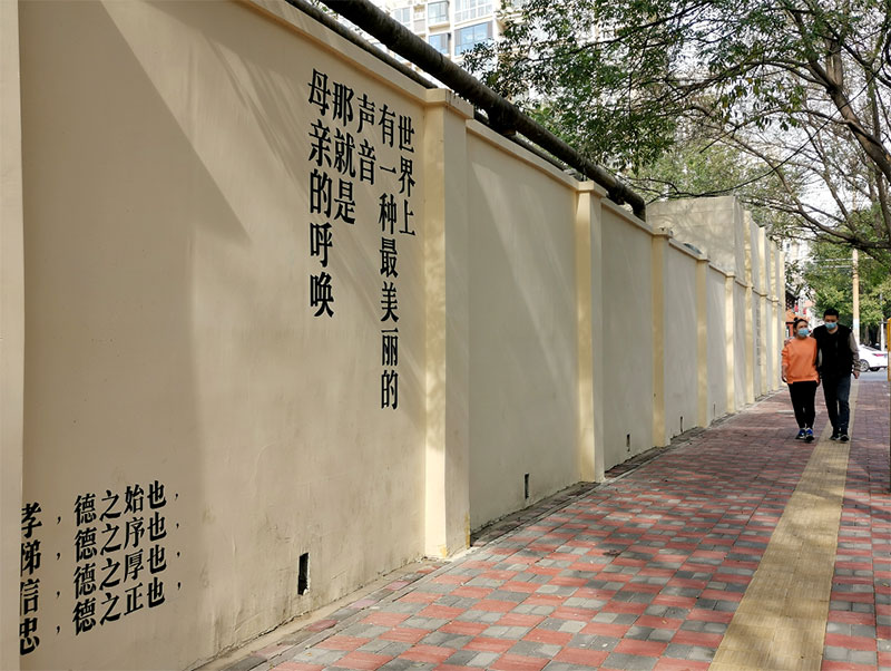 小巷煙火氣,最撫凡人心。一面米黃色的墻,充滿懷舊的氣息。墻上寫著的一句話“我們?nèi)绱藷釔凼仪f”、“總要來趟石家莊吧,吹一吹民心河的晚風(fēng)”等文字為城市增添了一絲靈氣,賦予了這個城市更多的文化氣息。讓生活在這里的人們不斷收獲新的驚喜,更收獲心底的感動。