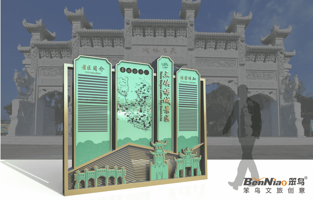 經(jīng)工作人員現(xiàn)場踏勘發(fā)現(xiàn),三峽梯城景區(qū)內(nèi)標(biāo)識系統(tǒng)不完善,入口形象缺失,4A級景區(qū)昭示性缺乏,現(xiàn)有導(dǎo)視畫面磨損嚴(yán)重,信息指示不清晰,且風(fēng)格不統(tǒng)一。