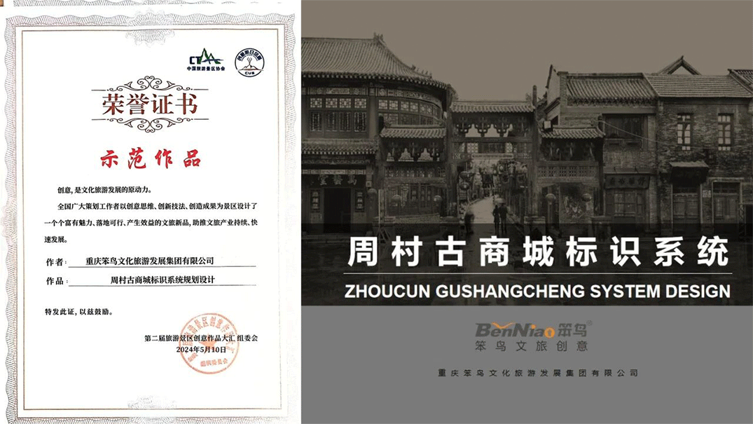 《周村古商城標(biāo)識(shí)系統(tǒng)規(guī)劃設(shè)計(jì)》榮獲本次大會(huì)最高獎(jiǎng)項(xiàng)——示范作品獎(jiǎng)。作品中笨鳥文旅利用周村歷史文化、地域文化、自然空間等特色,結(jié)合周村建筑環(huán)境選取材質(zhì),傳遞文化信息,促進(jìn)景區(qū)文化特色提升,增加對(duì)游客的吸引度,榮獲本次活動(dòng)示范作品獎(jiǎng)!《周村古商城標(biāo)識(shí)系統(tǒng)規(guī)劃設(shè)計(jì)》榮獲本次大會(huì)最高獎(jiǎng)項(xiàng)——示范作品獎(jiǎng)。作品中笨鳥文旅利用周村歷史文化、地域文化、自然空間等特色,結(jié)合周村建筑環(huán)境選取材質(zhì),傳遞文化信息,促進(jìn)景區(qū)文化特色提升,增加對(duì)游客的吸引度,榮獲本次活動(dòng)示范作品獎(jiǎng)!