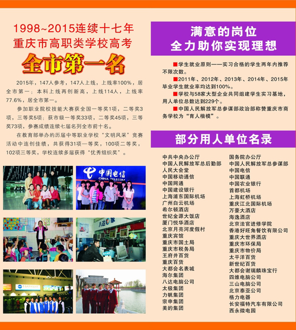 2017年重慶市商務學校招生專業(yè)計劃及說明
