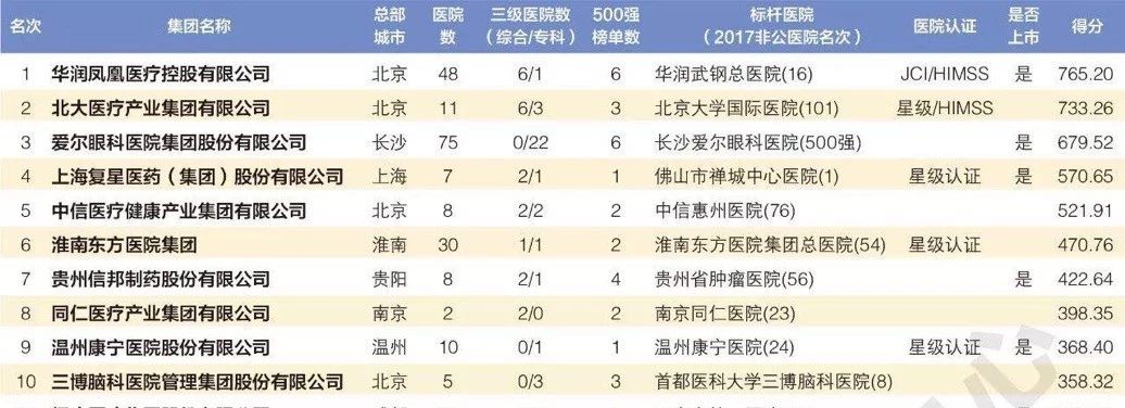 該榜單是由第三方專業(yè)機(jī)構(gòu)——艾力彼醫(yī)院管理研究中心組織評(píng)選,其評(píng)選標(biāo)準(zhǔn)主要基于反映基礎(chǔ)指標(biāo)、競(jìng)爭(zhēng)力排名、品牌誠(chéng)信、服務(wù)能力等綜合競(jìng)爭(zhēng)力的實(shí)際數(shù)據(jù),除北大醫(yī)療外,華潤(rùn)鳳凰、愛爾眼科也進(jìn)入前三甲。