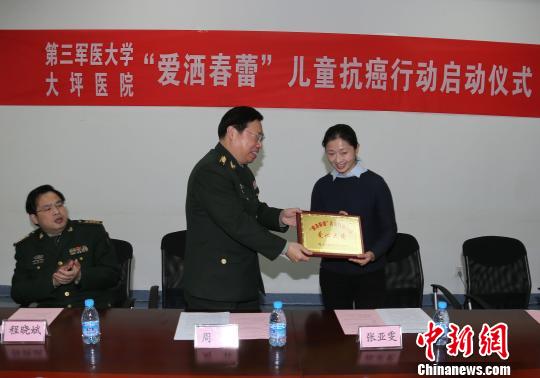 13日,第三軍醫(yī)大學(xué)大坪醫(yī)院?jiǎn)?dòng)的“愛(ài)灑春蕾”兒童抗癌行動(dòng)。羽毛球世界冠軍張亞雯也作為此次行動(dòng)的愛(ài)心大使來(lái)到現(xiàn)場(chǎng),為患癌兒童加油打氣。