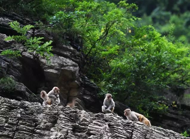 5月26日拍攝的小三峽岸邊的野生獼猴