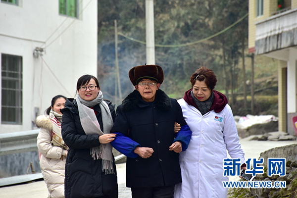 接年老村民到義診點(diǎn)。新華網(wǎng)發(fā)(夏懋書(shū) 攝)