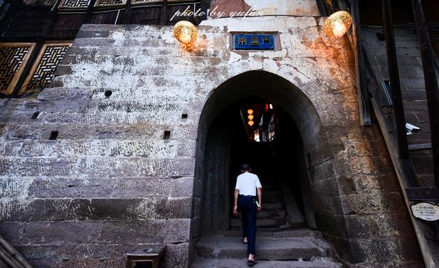 兩座門均為拱形石門,出寨門向西下坡是一條長長的石梯,呈階梯型向下延伸通向古碼頭,城墻上建滿了西南地區(qū)較為普遍的吊腳樓。