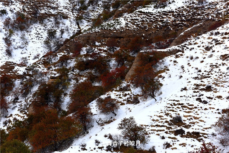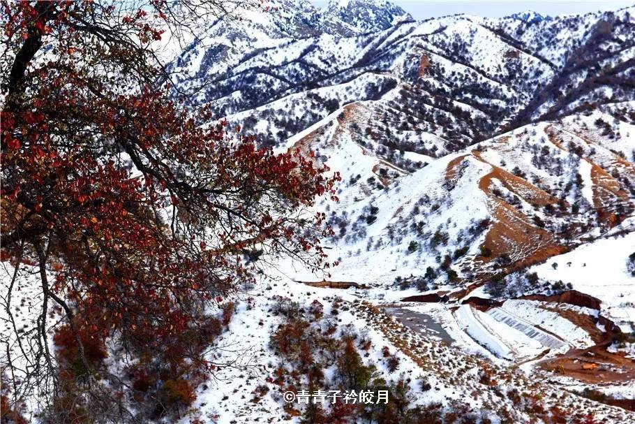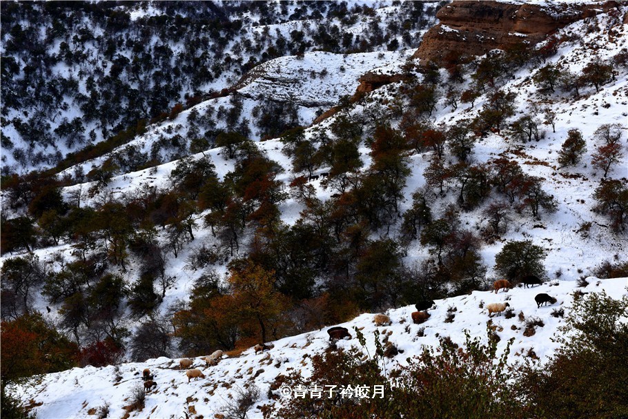 半山腰上,牛羊在休閑的吃草,還時不時傳來它們的叫聲,一場初雪,更是讓這一切更加嫵媚,如詩如畫。