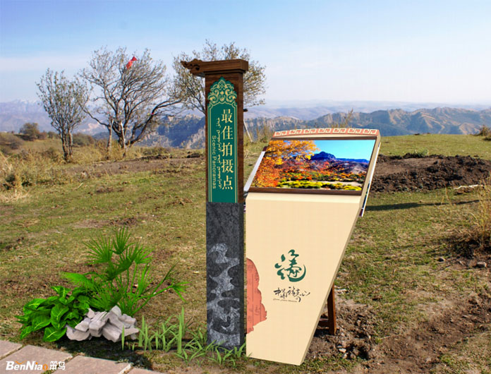 景區(qū)導(dǎo)視標(biāo)識(shí)系統(tǒng)中大多使用木材,再配以相應(yīng)工藝,就能夠創(chuàng)造出貼近自然、土生土長(zhǎng)的氛圍和景區(qū)內(nèi)的環(huán)境相得益彰,這是自然景觀所需要的。不過如果是人文景觀,就要結(jié)合景觀風(fēng)格特色加以選擇恰當(dāng)?shù)牟牧?,使其搭配協(xié)調(diào),自然而然的加入,而不是硬生生的放在那里。
