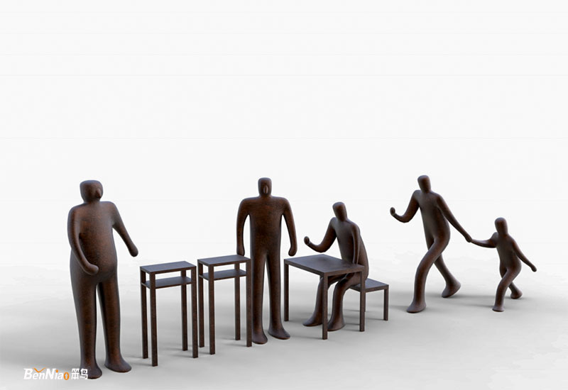 城市景觀小品的取材和表現(xiàn)形式是多種多樣的,基于設計師創(chuàng)作思路而變化萬千。包括人物景觀小品、動物景觀小品、以植物為題材的景觀小品、用幾何形體為題材的雕塑小品以及山石雕小品等。它們來源于生活,為環(huán)境增添了玩賞性與趣味性。