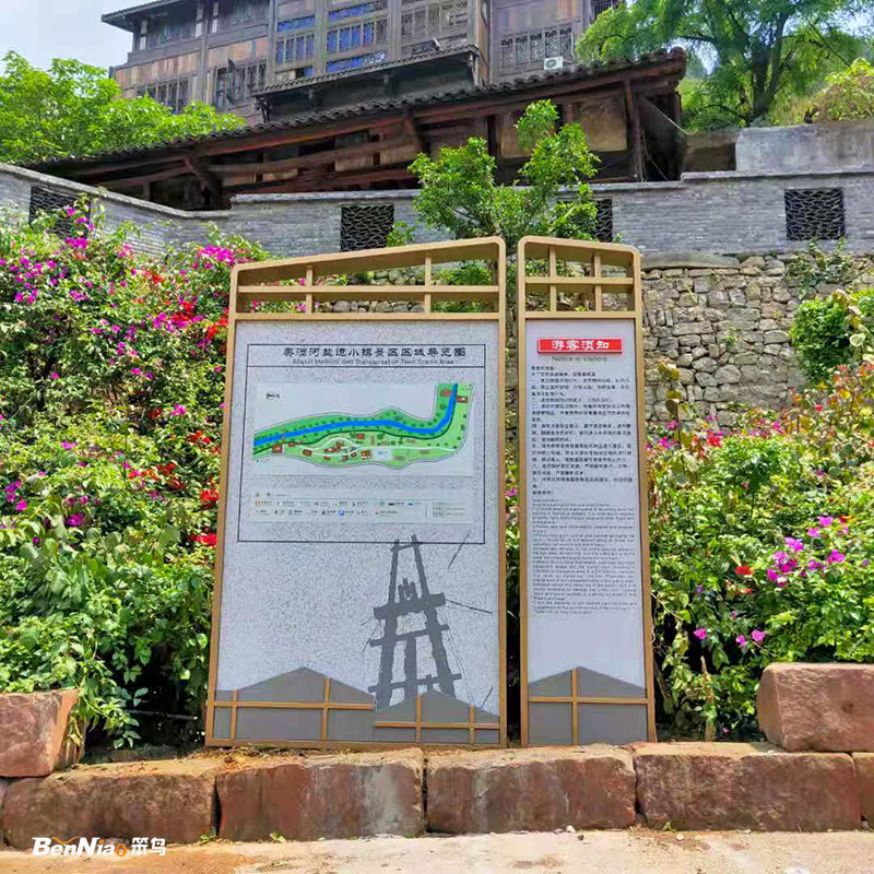 2、景區(qū)介紹牌:也稱景點(diǎn)介紹牌,它向游客展現(xiàn)的是景點(diǎn)、景色的有關(guān)由來,讓游客可以更片面的了解地方名勝的事跡,了解該景區(qū)景點(diǎn)的歷史,讓游客快速的了解該景區(qū)的特征特點(diǎn),讓游客在游玩的進(jìn)程中有更好的體驗(yàn)。