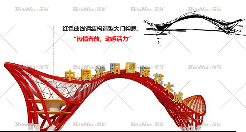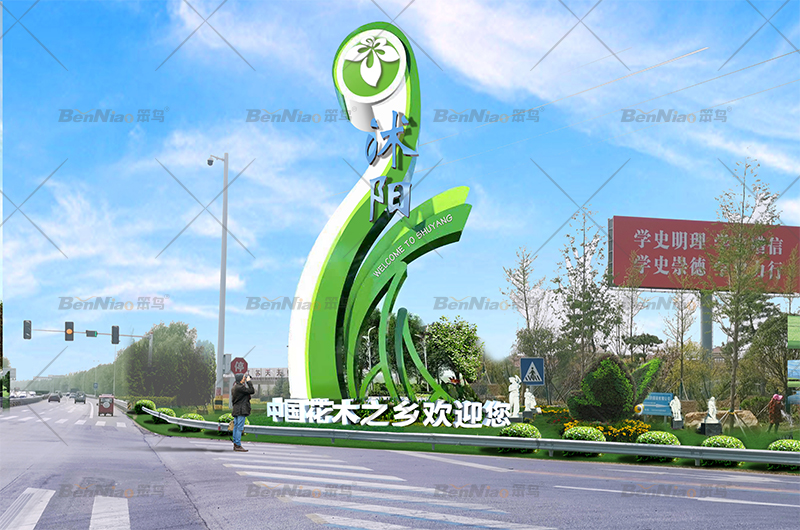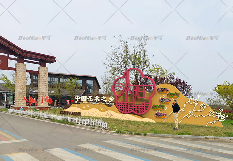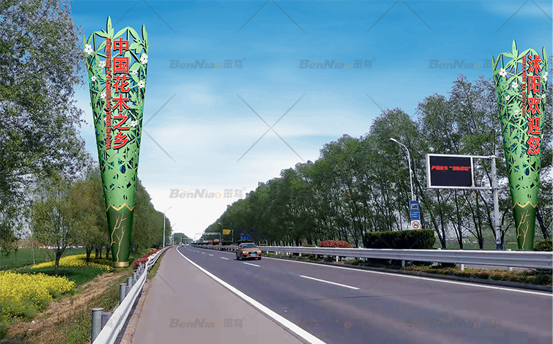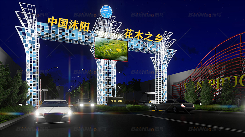 在不同的節(jié)點(diǎn),笨鳥(niǎo)文旅提出了不同的設(shè)計(jì)愿景,豐富整體縣域空間,如為入口形象提出了“花木之鄉(xiāng) 花舞木源”的設(shè)計(jì)愿景,打造花木之鄉(xiāng)入口門戶,突出沭陽(yáng)縣“中國(guó)花木之鄉(xiāng)”的品牌形象,并展現(xiàn)了入口形象白天和夜間的設(shè)計(jì)效果圖。