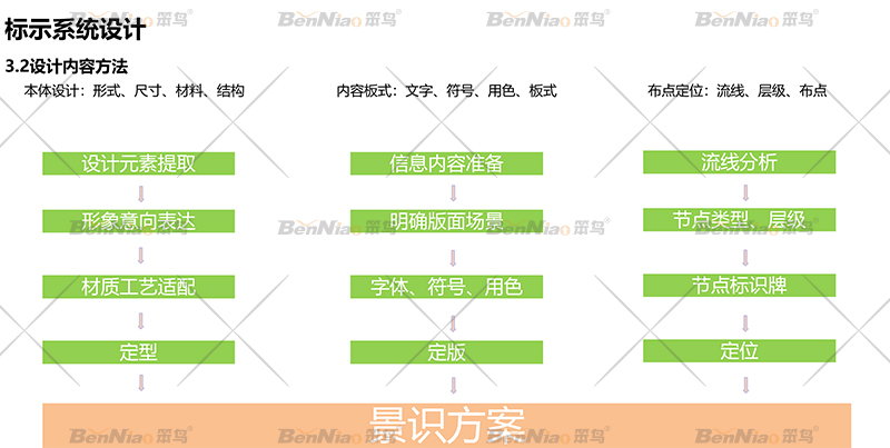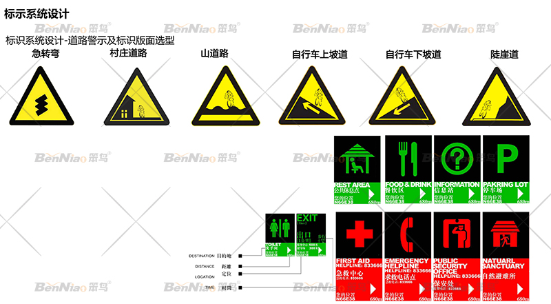 旅游廊道建設(shè)中,不止要打造景觀,提升其吸引力,彰顯地區(qū)主題,基礎(chǔ)公共服務(wù)設(shè)施也是其重點(diǎn)組成部分。在對(duì)旅游廊道進(jìn)行整體景觀提升的同時(shí),笨鳥(niǎo)文旅也針對(duì)自身的拿手業(yè)務(wù)——導(dǎo)視系統(tǒng)規(guī)劃設(shè)計(jì)提出了設(shè)計(jì)規(guī)范,完善旅游廊道的公共服務(wù)設(shè)施。