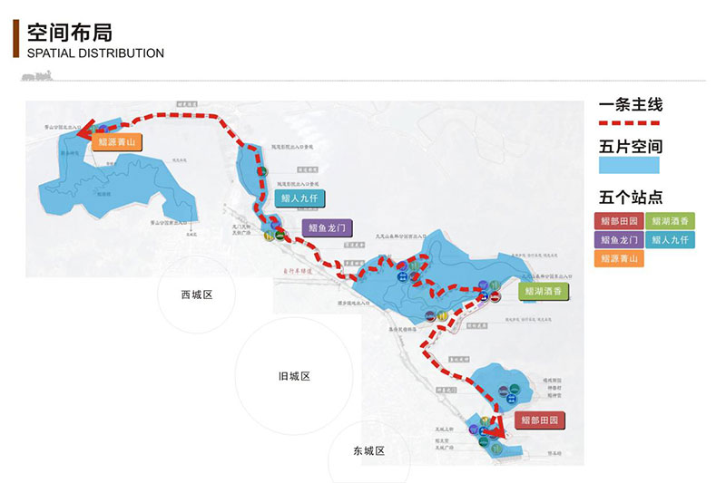 此項目在旅居習水的總體發(fā)展目標框架下,統(tǒng)籌考慮習水縣城及周邊各區(qū)域的聯(lián)動發(fā)展,突出小火車核心引擎的帶動作用以及空間輻射結構。串聯(lián)多個的旅游組團,聯(lián)動新老兩個城區(qū), 撬動旅居習水建設。