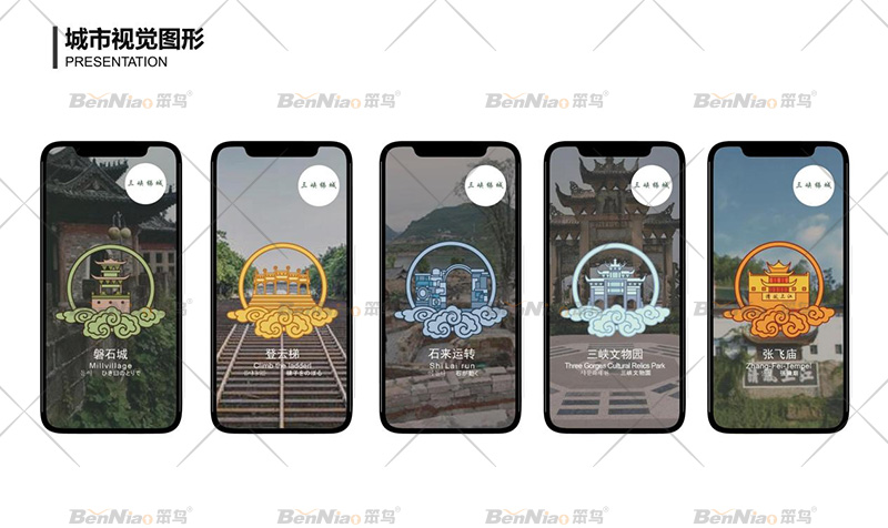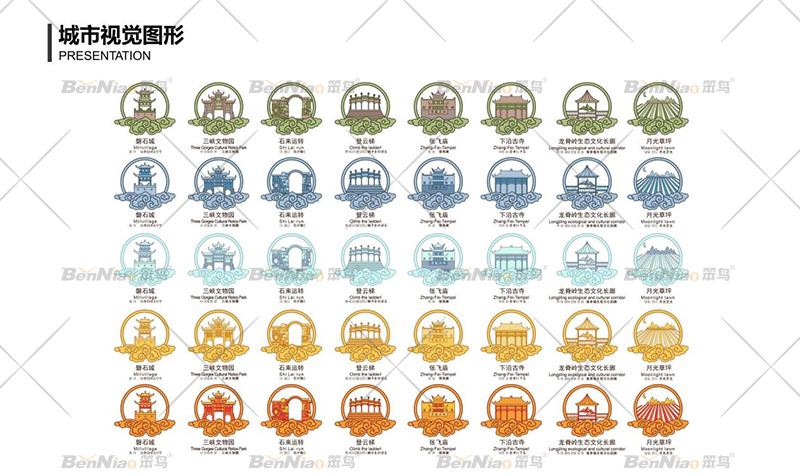 城市視覺圖形是城市視覺形象的核心,是城市內(nèi)涵意義的主要視覺載體,它可以直觀地反映出城市的視覺識別特征,將抽象的城市內(nèi)涵與精神以視覺的方式呈現(xiàn)出,濃縮成為城市的標(biāo)志或象征物為公眾所認(rèn)知。笨鳥視覺設(shè)計(jì)師通過對云陽縣獨(dú)特的歷史文化、自然文化和地標(biāo)性建筑的提煉,使其圖形化,擴(kuò)大設(shè)計(jì)語言的豐富性,展現(xiàn)云陽地理信息文化,從而借此契機(jī)盡早的統(tǒng)一城市形象,打造云陽自身特色品牌。并將帶有濃郁特色標(biāo)志性圖案應(yīng)用到云陽縣城市環(huán)境中去,服務(wù)于云陽縣的城市發(fā)展,豐富其文化。