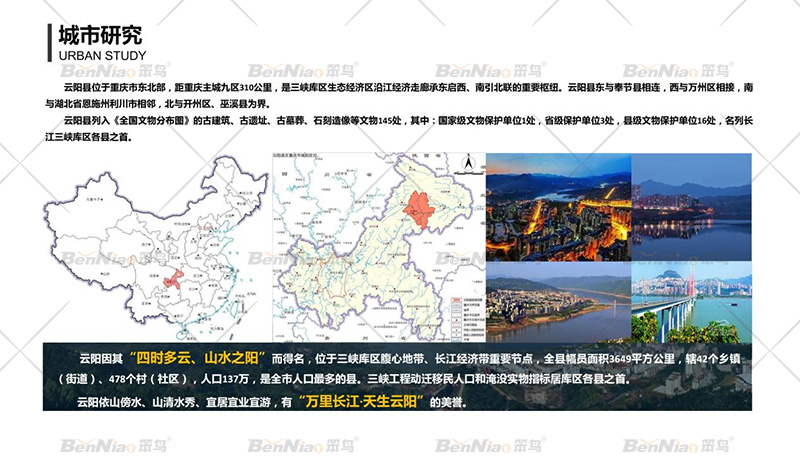 笨鳥文旅將從城市品牌形象的五個(gè)視角去設(shè)計(jì)專屬云陽縣的城市品牌符號:一、資源視角的城市品牌形象;二、產(chǎn)品品牌視角的城市品牌形象;三、文化視角的城市品牌形象;四、產(chǎn)業(yè)視角的城市品牌形象;五、營銷視角的城市品牌形象。綜合以上的五個(gè)視角為云陽縣打造成具有獨(dú)特性的旅游名片,從而優(yōu)化旅游發(fā)展格局,強(qiáng)化旅游宣傳力度。