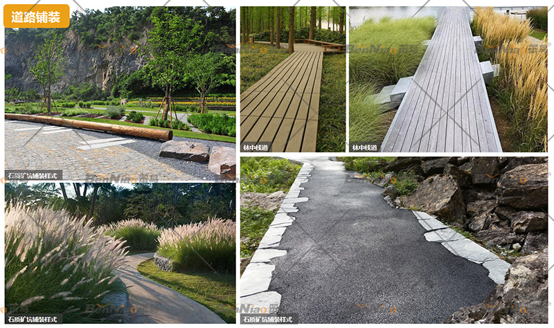 交通是游憩方式中的一項(xiàng)重要內(nèi)容,交通方式的有效設(shè)計(jì)可以在滿足游客移動(dòng)的同時(shí),形成獨(dú)特的旅游體驗(yàn)。項(xiàng)目結(jié)合場(chǎng)地特點(diǎn),不同分區(qū)、景區(qū)特色、區(qū)域亮化,進(jìn)行游樂化、本土化、生態(tài)化設(shè)計(jì)。游步道鋪裝材料選取、文化元素應(yīng)用,形成具有一定文化性、趣味性和參與性的特色交通方式。