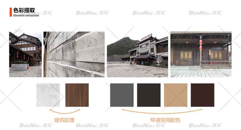 對(duì)盒馬小鎮(zhèn)的歷史、文化、人文等方面對(duì)景區(qū)做詳盡的調(diào)查、考證后才確定導(dǎo)視系統(tǒng)顏色。